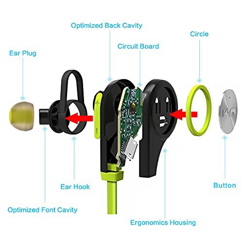 -. Feature : NOISE REDUCTION - Built-in HD microphone with CVC 6.0 noise cancellation,ensure stereo mi sic sound and reduce background noise.You can focus on your favorite music, no matter where you are. / SUPER QUICK PAIRING - Latest Bluetooth 4.1 technology makes pairing with all Android IOS devices.Bluetooth range in the open space is 10M/33 Feet.It can be connected with two devices simultaneously. / LONG STANDBY TIME - Up to 4-6 hours talking/playing,150 hours standby.It is compatible with iPhone 6/6 Plus/5/5S/SE/4/4S, iPad iPod Galaxy S7/S6/S5/S4/S3, IOS/Android/Windows mobile phones. / HIGH DEFINITION STEREO HEADEST - With advanced APTX tech and build-in digital noise reduction,offers incredible sound quality with deep bass and crystal clear treble.Works great for soundtracks, audio books, relaxing sounds, and even techno music. / COMFORTABLE SECURE FIT - With ergonomic design and silicone ear hooks, it's secure behind your ears and rest comfortably in the ear canal. Premium soft smooth silicone gel surface helps sweat proof. It is great for gym, running, jogging, hiking, cycling, and impact sports.