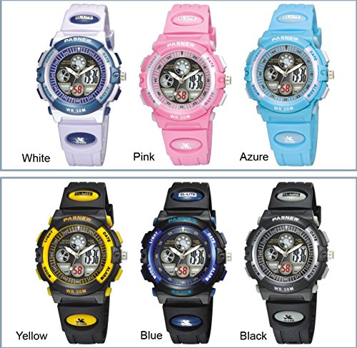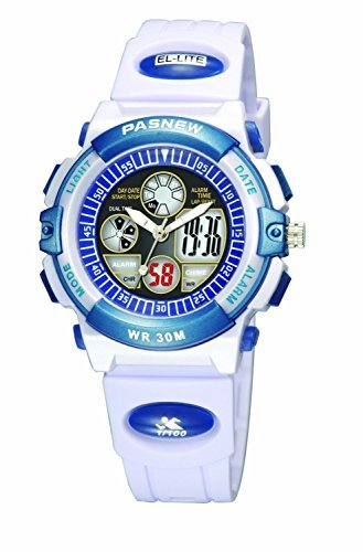 -. Binding : Watch -. Brand : PASNEW -. Department : Unisex-child -. EAN : 0634182999274 -. Feature : Japanese High quality movement with rubber band / Comfortable and Easy to wear. Fit for wrist : 130-180 mm / Product Length: 220 mm, Case size: 38 * 38 mm, thickness : 15 mm. / Waterproof 30M. 3ATM water resistant for swimming (not for diving and do not press button under water.) / Independent dual display: digital and analog. Alarm clock function, Stop watch function. Back light function,12H/24H time format -. Label : PASNEW -. Manufacturer : PASNEW -. Model : YQ-0006WH -. MPN : YQ -. PackageQuantity : 1 -. PartNumber : YQ -. ProductGroup : Watch -. ProductTypeName : WATCH -. Publisher : PASNEW -. Studio : PASNEW -. Title : PASNEW Boys Girls Waterproof Sport Digital Watch Dual Time Display - White -. UPC : 634182999274