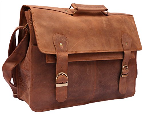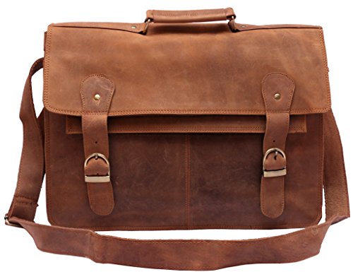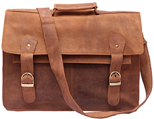 -. Feature : Full grain Crazy-Horse Genuine Cow Leather, 100% Brand New & High Quality / 1 front big pocket, 2 inner compartment and 1 zipper pocket / Dimensions: 17 inches (length), 12 inches (height), 5 inches (depth) / Strong & durable brass fittings & buckles, quality zippers, heavy duty suede lining on flap and cotton lining inside / Closure: Snaps Hidden under Buckle, Adjustable shoulder strap and hand carry