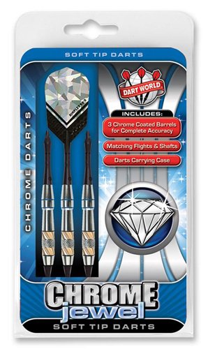 -. Binding : Sports -. Brand : Dart World -. Feature : Coated Brass / Aluminum Shafts / Dimple Tips / Set of 3 soft tip darts / Black Slim Case -. Label : Dart World -. Manufacturer : Dart World -. Model : 80165-P -. ProductGroup : Sports -. ProductTypeName : SPORTING_GOODS -. Publisher : Dart World -. Studio : Dart World -. Title : Dart World Chrome Jewel Coated Brass Soft Tip Dart Set