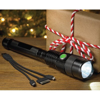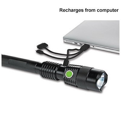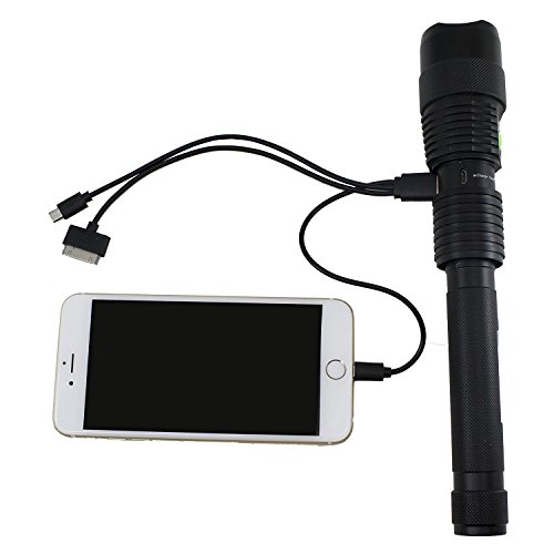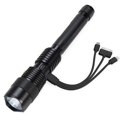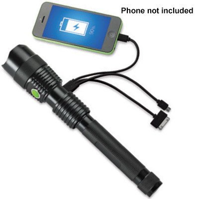 Promier® 1000 Lumen Rechargeable Flashlight + USB Charge Hub, Power Supply, 800mAh Power Bank, With Multi-Use Cable, All-In-One Power & Light