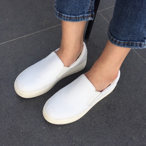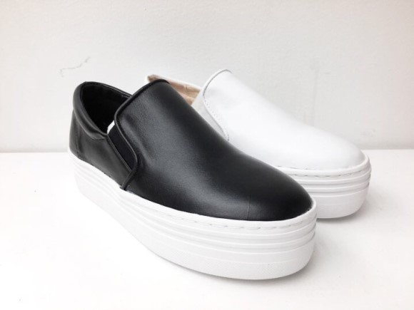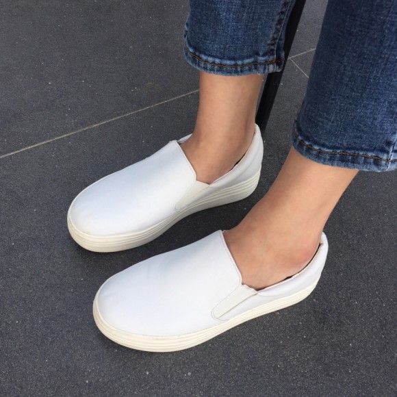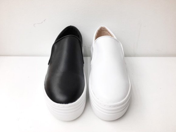 Basic slip on white, black Soft puffy leather Stylish style Soft shoes