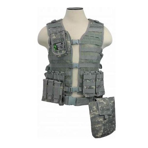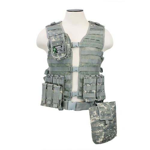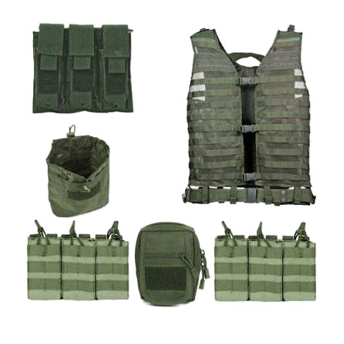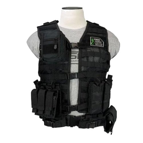 Studio : NC Star Publisher : NC Star Binding : Sports Product Description The vest is made from rugged tactical nylon with a mesh front panel for increased breathability and a comfortable thick padded rear panel which decreases fatigue and stress from heavy loads. This MOLLE/PALS modular vest is a highly customizable and the included pouches can be easily configured to best suit your playing style. A handy roll-up Tactical Dump Pouch has been included with this vest, which increases your reload efficiency and provides plenty of storage space for extra gear. Features: - Tough PVC mesh webbing for maximum ventilation and durability - 3 adjustable front buckles, side straps and adjustable shoulder panels (This means the vest is adjustable to fit most body types) - Heavy duty pistol belt with two additional pistol magazine/utility pouches - Reinforced drag handle strap - Padded hydration system pouch (bladder not included) Specifications: - Material: Heavy duty PVC fabric - Zippered compartment (HxWxD): 5-1/2x4x1-3/4"/13.97x10.16x4.44cm - AR Triple Mag Pouch (LxWxH): 8.75x6.5x0.5"/22.22x16.51x1.27cm - Folding Dump Pouch (LxDxW): Folded: 5x5x1-1/4"/12.7x12.7x3.17cm - Folding Dump Pouch (LxHxW): Opened: 7-1/2x8-1/2x3-1/2"/19.05x21.59x8.89cm - Weight: AR Triple Mag Pouch: 6.4oz/181.43g Kit Includes: - NC STAR Vism PAL Modular Vest CPV2915D - 2 x AR Triple Mag Pouch CVAR3MP2928D - Folding Dump Pouch CVFDP2935D - Triple Pistol Magazine Pouch CVP3P2932D - Small Utility Dump Pouch CVSUP2934D - VISM Zombie Strike Velcro Patch. 0