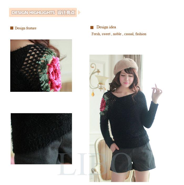 Sexy Winter Women Fashion Sexy Hollow Rose Batwing Sleeve Pullover Jumper Sweater