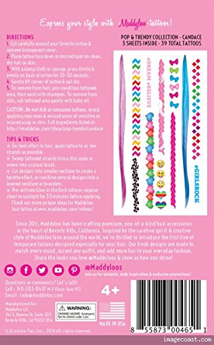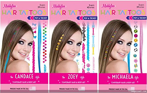 3 Pack Maddyloo Temporary Hair & Body Tattoos - Colorful POP & TRENDY Collection - Gorgeous Art for your Hair & Skin OVER 300 tatoos on 9 separate tattoo...