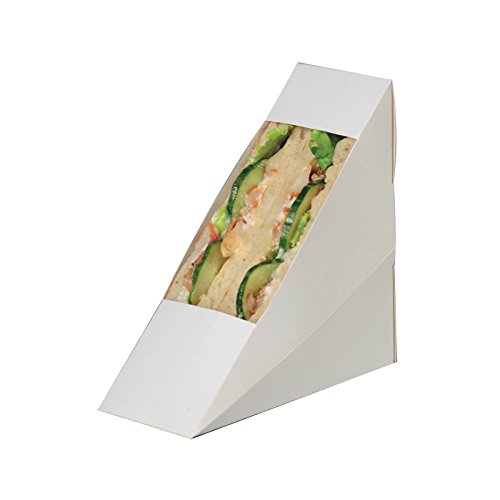 PacknWood Cardboard Paper Sandwich Wedge Box with Window, 4.84" x 2.05" x 4.84", White (Case of 500)