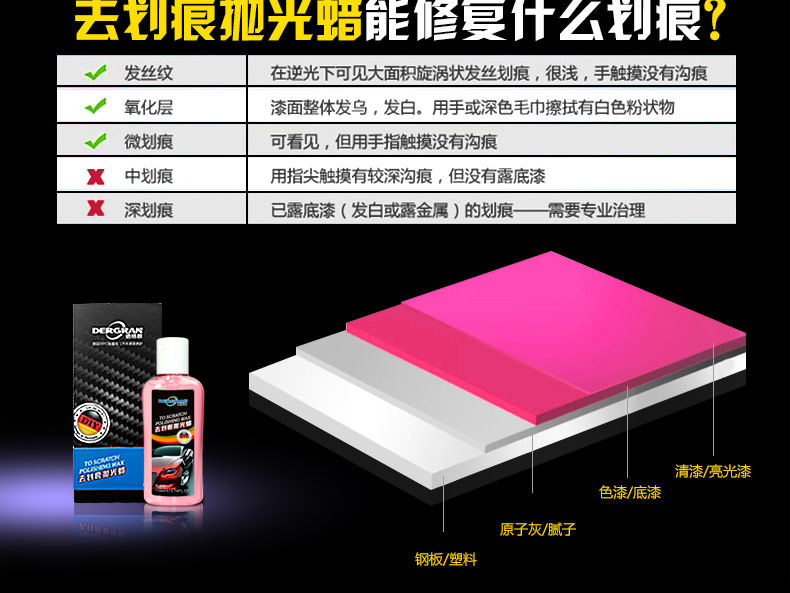 德格朗去划痕抛光蜡汽车漆面修复蜡抛光去污蜡汽车养护新车蜡镀膜