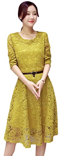 -. Title : (emoluna) フレア ワンピース 大人 エレガント 総レース ベルト付き レディース 長そで ひざ丈 パーティー フォーマル