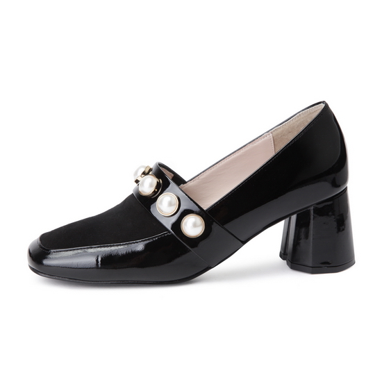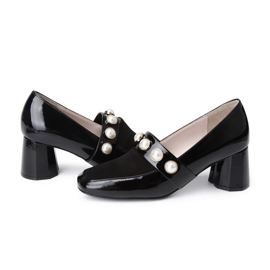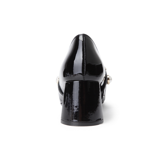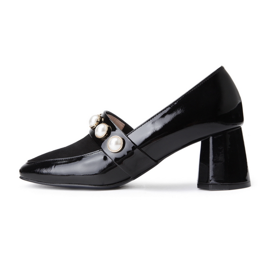 - 진주를 적용한 스트랩으로 포인트를 준 펌프스.