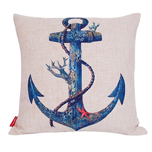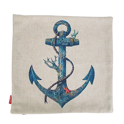 Kingla Home Square Pillow Cases Cotton Linen Couch Cushion Covers Decorative Zippered Throw Pillow Covers 18 X 18 Inch Blue Rusty Anchor with Coral