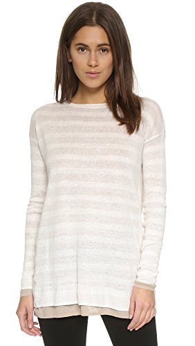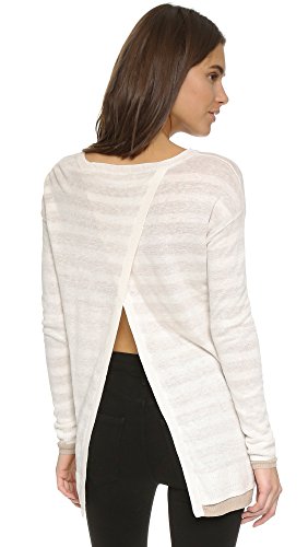 A double-layered Three Dots sweater, composed of fine-knit linen. The reversible piece is styled with one striped side, and one solid side, and crossover back panels cut a revealing profile. Ribbed edges. Long sleeves.Feature
