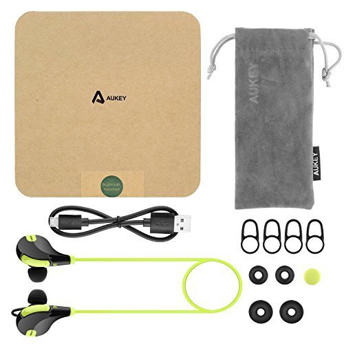 Package Content: Aukey EP-B4 best Bluetooth Headset, USB Charging Cable, 6 x Ear buds (large, medium and small), 6 x Ear hooks (large, medium and small), User manual & Aukey 24 Month worry-free warranty