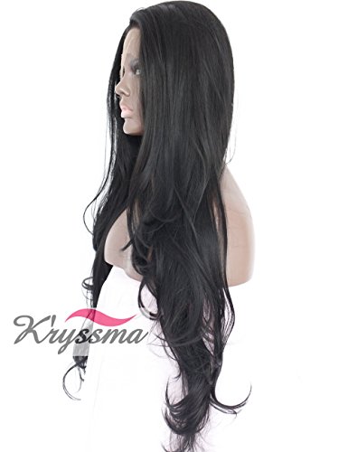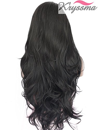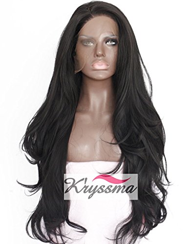 K'ryssma Synthetic Lace Front Wig for Women Natural Wave Long Wigs Heat Resistant Fiber Hair Black #1b 24 Inches