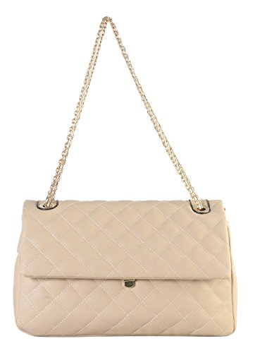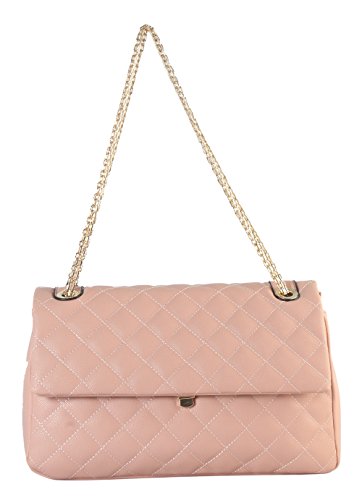 -. Feature : This handbag comes in 6 different colors: Beige, Black, Light Brown, Light Khaki, Pink, and Taupe. / High Quality PU Leather Medium Quilted Crossbody Handbag with Chain Strap. / High Quality Fabric Lined Interior with Multiple Interior Pockets. 2 Compartments with 2 Zippered Pockets and 2 Open Pockets Inside. / Approximate Size info: Length 12.6" x Width 3.6" x Height 7" Material: PU Faux Leather. Top Zipper with Flap Closure. / Color showing in other color is to show the different variation angles of the handbag. The actual bag ship, will be the one your purchased.