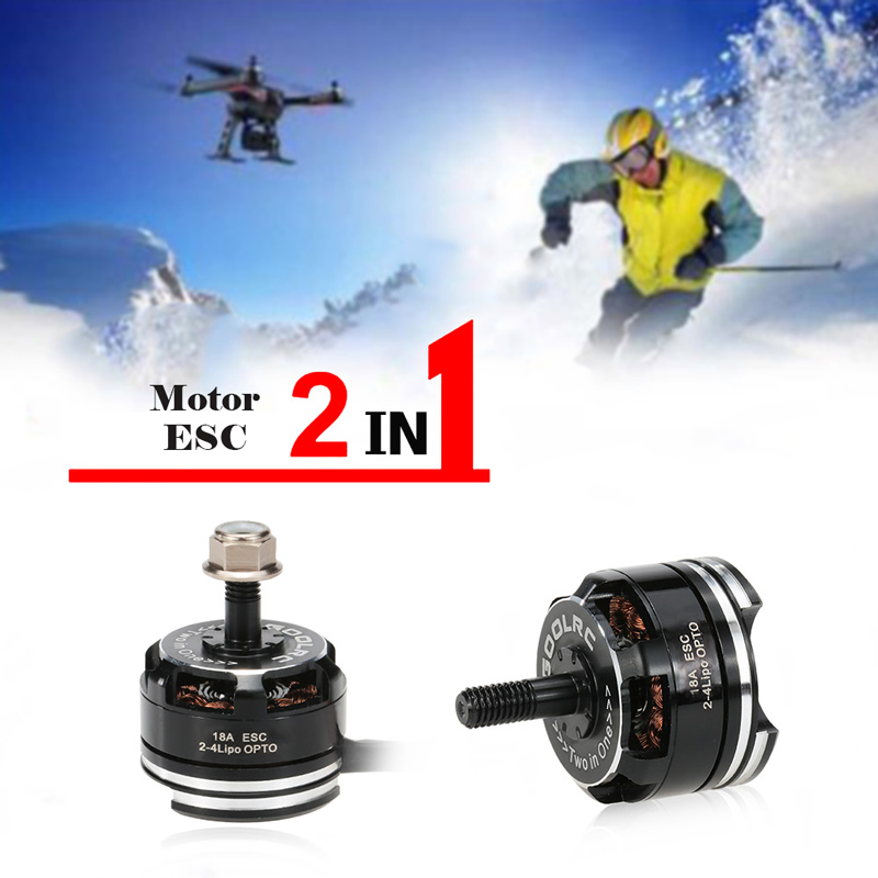X2204 2300KV motor with integrated 18A ESC for saving weight and space on quads.