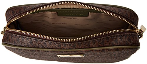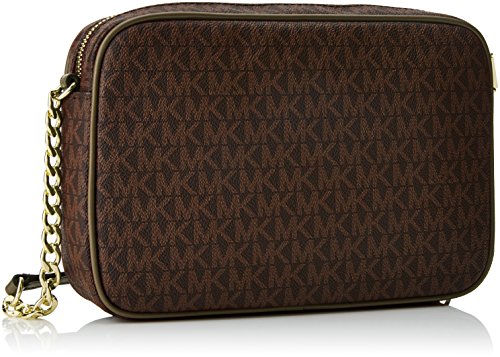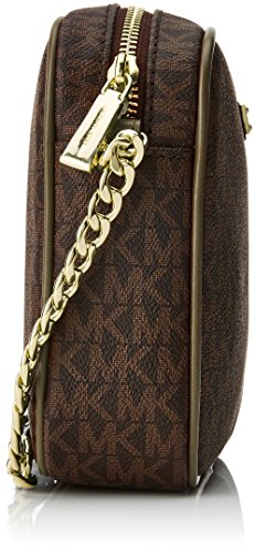 -. Feature : Gold-tone hardware, leather trim / Fully lined interior / Main zip pocket / Interior wall pockets / Adjustable leather shoulder strap with a 25'' drop