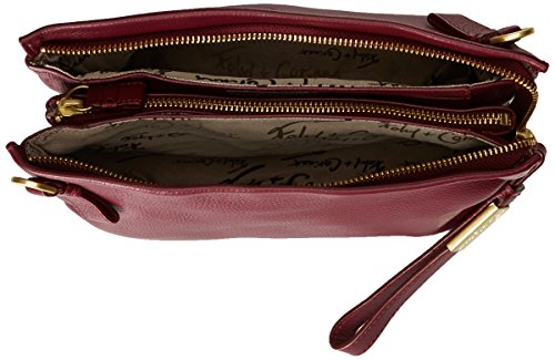 -. Feature : Foley + corinna signature lining / Triple compartment crossbody/wristlet with credit card slits / Center interior zipper compartment and 2 open pockets
