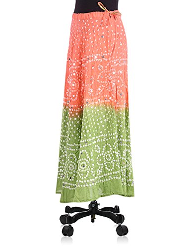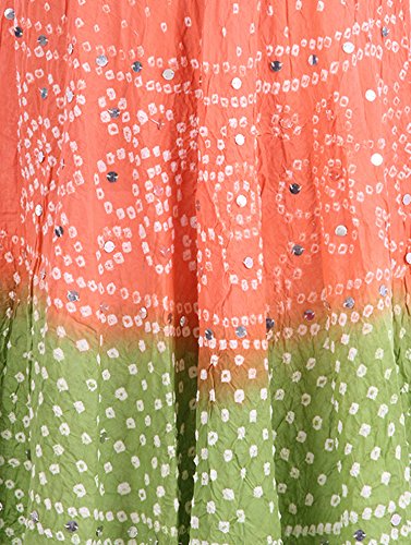 Shaded Mirror Work Cotton Hippi Boho Bandhani Skirt (Peach Green)
