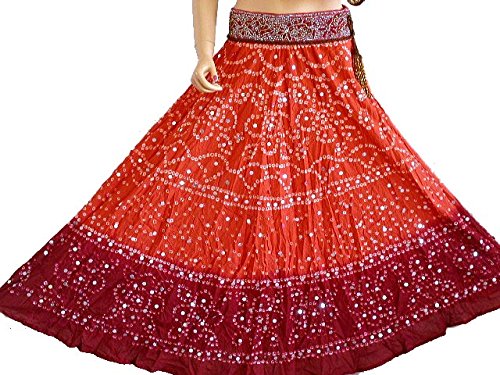 Hippi Boho Indian Cotton Bandhani Skirt with mirror finish work all over.