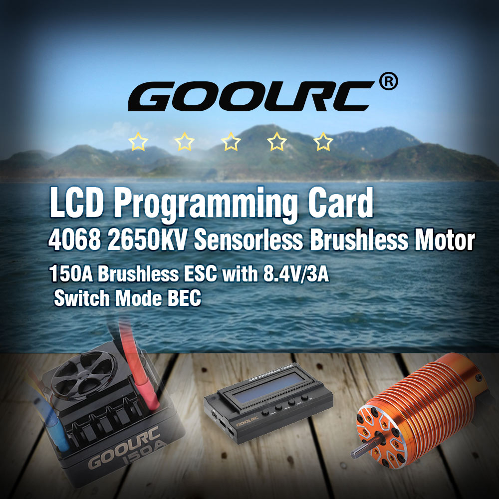 GoolRC 4068 2650KV Sensorless Brushless Motor & 150A Brushless ESC with 8.4V/3A Switch Mode BEC & LCD Programming Card Combo Set for 1/8 RC Car.