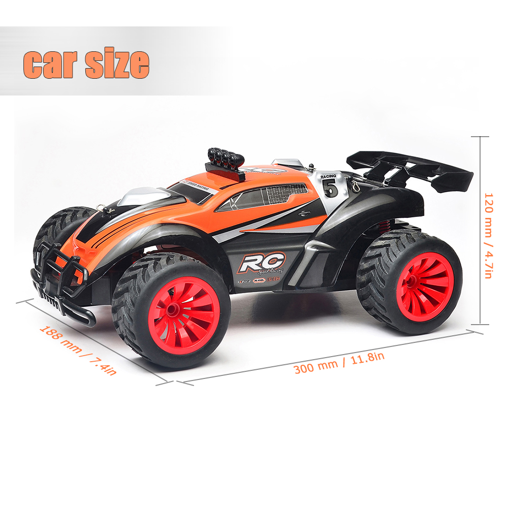This RC buggy car is made of high quality and strong material with capacity in anti-collision and beat-resistance. With soft hollow rubber tyre and professional shock absorbing system features great trafficability. Just go enjoying the fun!