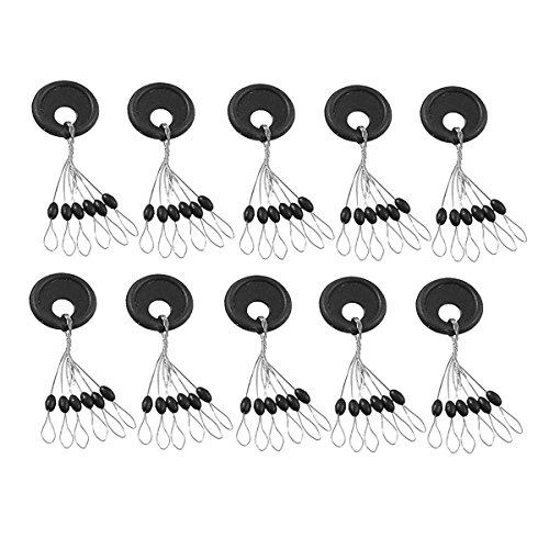 -. Feature : Product Name : Fishing Bobber Stopper;Size : L / Design : 6 in 1;Material : Plastic, Metal, Rubber / Length : 51 mm / 2";Ring Size : 15 x 2 mm / 0.59" x 0.08" (D*T) / Each Stopper Size : 5 x 3 mm / 0.2" x 0.12" (L*D);Main Color : Black, Silver Tone / Weight : 5g;Package : 10 x Fishing Bobber Stoppers