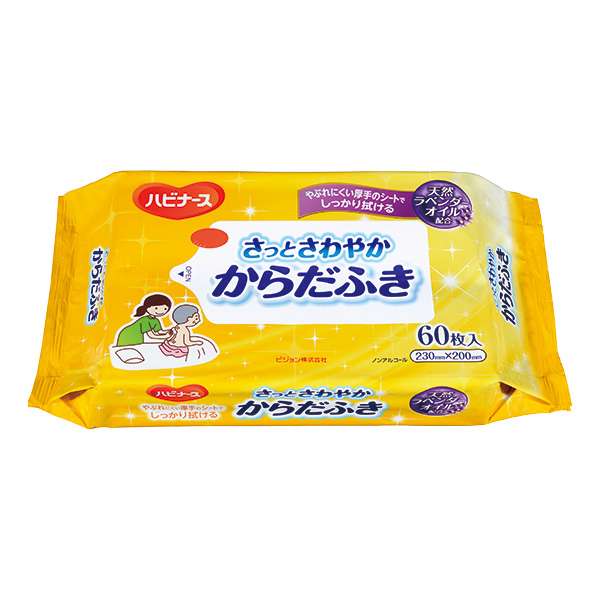●<こんな時>・おむつ替えの時に・入浴できない時のからだふきに・介護時のお手入れに【使い方】1.表についているラベルのつまみ部分を軽くひっぱり、開けてください。