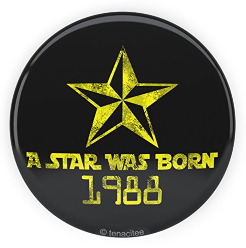 Binding : Apparel Product Description A Star Was Born 1988 2.25" Button by Tenacitee. Express yourself! Buttons are the perfect way to let the world know how you feel. Our buttons are designed, printed, and handmade at Tenacitee's studio in Oklahoma. Proudly made here in the USA! This 2.25" button has a metal shell with pinback and mylar cover to protect from scratches. Perfect to decorate your shirt, jacket, bag, or put anywhere else you want! It's a great gift or giveaway for parties. 0