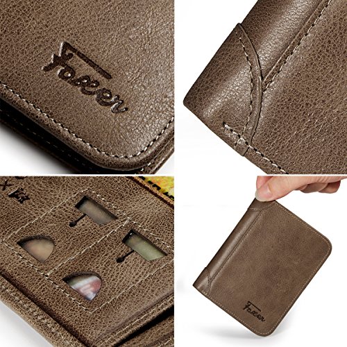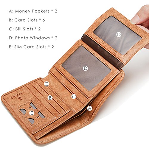 -. Feature : GENUINE LEATHER WALLET - Made of high quality genuine cow leather, enhancing softness and comfort. Polyester silk lining ensures your things stored in good condition. / PERFECT SIZE - Measures about 3.9" L x 0.6" W x 4.9" H when closed, slim wallet design is easy to put into your jeans or the suit. / LARGE CAPACITY - Our men's bifold wallet comes with 2 compartments for cash, 6 card slots, 2 photo or ID windows, 2 bill slots and 2 SIM card slots. / IDEAL FOR ANY OCCASION - Suitable for business office, college, travel or other occasions, makes yourself stand out with this bifold wallet. Great gift for your father, husband, boyfriend or for that someone special. / SATISFACTION GUARANTEE - FOXER men leather wallet comes with our friendly customer service. If you happen to run into any problem, our team will be glad to assist you.