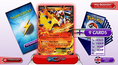 BLAZIKEN EX (Lohgock) XY54 (PROMO) 170HP in diesem verbesserten Booster Thunderbolt inbegriffen versiegelt mit 10 Englische Karten Pokemon. Dieser booster enthält die Karten : - BLAZIKEN EX (Lohgock) XY54 (PROMO) 170HP - 1 holographische Karte - 1 Karte 100HP* - 1 Karte 90HP* - 2 Karten 80HP* - 4 allgemeine / wenig allgemeine Karten* *Mindestwerte Finden Sie alle besonders seltenen Karten ausschliesslich bei MY-BOOSTERFeature