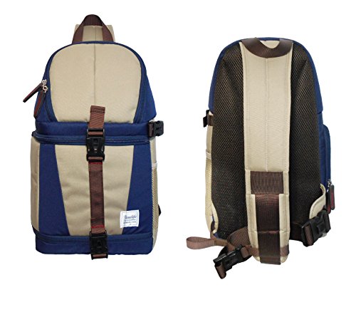 -. Brand : Baggex Store -. Color : Light Blue -. Department : womens -. Feature : Main compartment is designed to fit DSLR camera with or without standard lens attached plus additional lens, or Mirrorless camera. / Adjustable dividers for best arrangement of partitions to contain your camera, lens and accessories. / The sling backpack design facilitates easy rotation from the back to your chest front for convenient and fast access to your gear. / Padded shoulder strap with adjustable chest strap to stabilize the bag during activity. (the adjustable chest strap if not in use, can be concealed into the open pocket) / Shoulder strap Insert buckle with button lock to avoid accidental buckle release. A side pocket with webbing and buckle for holding tripod. -. Model : BA66V -. ProductGroup : Apparel -. ProductTypeName : LAGE -. Size : Normal -. Title : Stylish Camera Sling Backpack Bag for for DSLR Camera and lenses