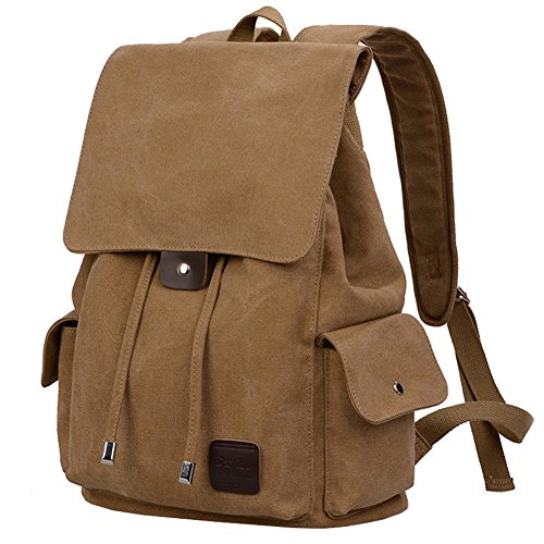 -. Title : Canvas Men Backpack clamshell Casual Leather Laptop Shoulder Bag Travel Sports Purse