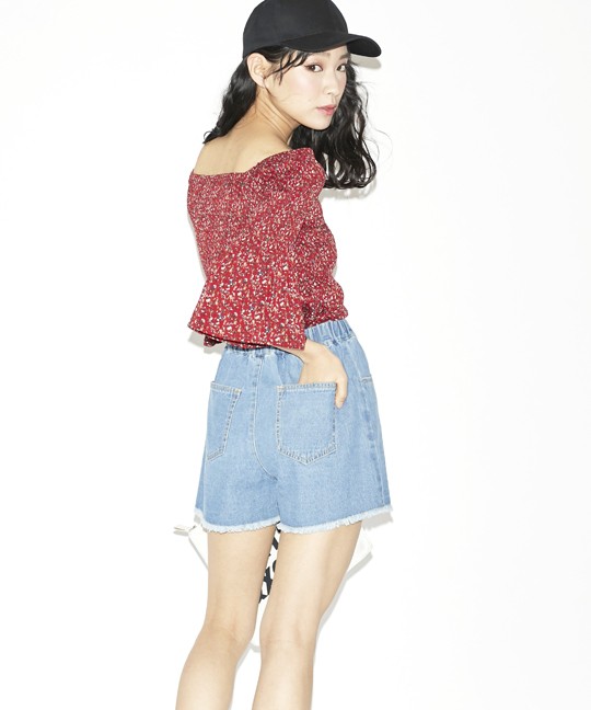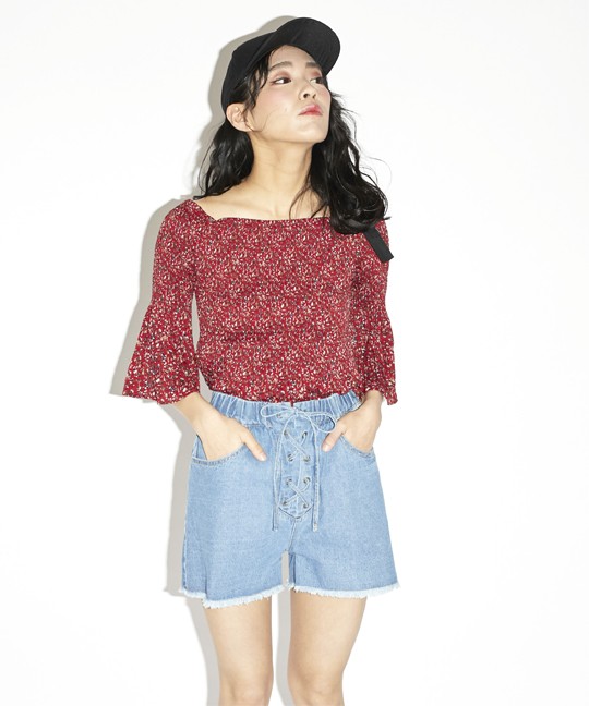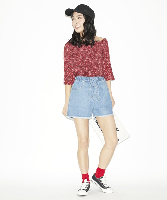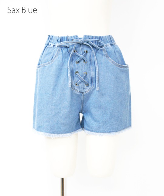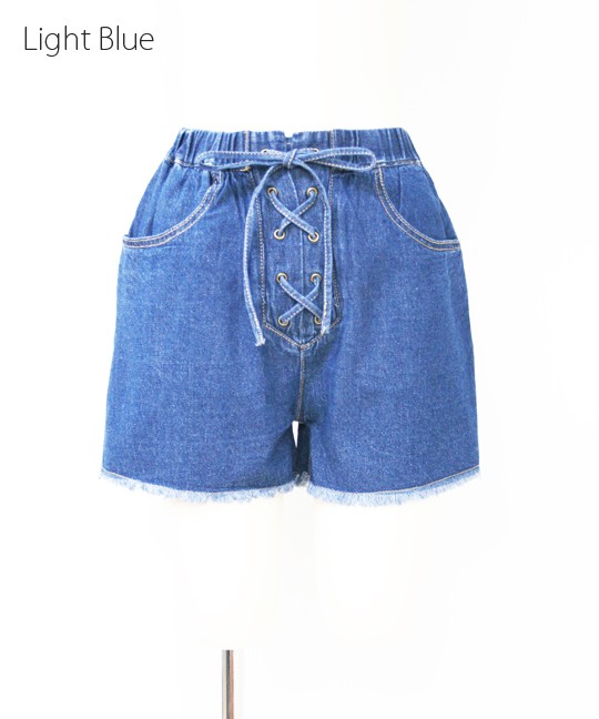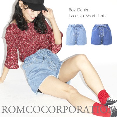 8オンスの薄地デニムが春夏には涼しい逸品! ウエスト部分のレースアップがスポーティ&ヘルシーでカワイイ! ウエストにはゴム入りで楽チン!履き心地も良し☆ モデル 身長165cmMサイズ