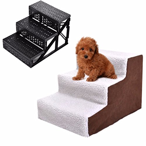 Studio : NOT APPLICABLE Publisher : NOT APPLICABLE Binding : Misc. Product Description Description: This pet step stairs is perfect for smaller dogs or older dogs and cats suffering from arthritis, painful joints, overweight bodies or hip dysplasia. Give your pet back their independence and allow them to easily access couches, ledges hard to reach spaces that they struggle to climb. Features a machine washable soft sheep textured cover. You can quickly and easily install it. Assembly fittings offer enough stabilization and safety. Help small dogs and cats play sports indoor , especially rain and snow, and accompany your pet growth happily . Features: Machine washable soft sheep textured cover. Streamlined design is perfect for storage. Stairs can hold up to 70lbs yet are lightweight and easy to move. Assembly fittings offer enough stabilization and safety. Easy to carry around and that your pet can use it indoors and out. No tools needed for assembly. Specifications: Cover Color: White and Brown Stair Color: Black Stairs Material: PP Cover Material: White lamb Size: 17.7" x 13.8" x 11.8" (L x W x H) Each Board Width: 5.9" Each Board Height:3.9" Net Weight:2.4 lbs Package includes: 1 x Pet Steps 1 x Lint Cover 0