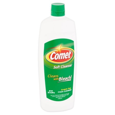 -. Feature : Cleans tough stains and delicate surfaces / Sparkling effect / Comet cleanser comes in a 24 fl oz bottle / Cleans with bleach but still gentle on surfaces / Use for the kitchen, bathroom and other areas