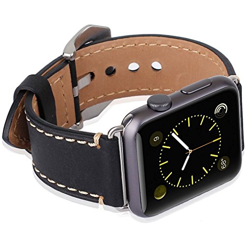 -. Title : PUZE 42MM Apple Watch Band Genuine Leather IWatch Strap Replacement Band with Metal Clasp for Apple Watch Band Sport Edition (black)