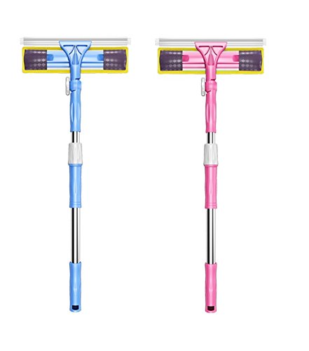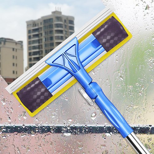 -. Feature : easily clean windows, doors, tile and floors.Double side design,wash and scrub the window with the wet sponge, wipe dry the window with the squeegee, one tool performs both actions. / Save time helper.Simplify window cleaning, and cut the time it takes in half. Our wide squeegee design covers a large surface area quickly. / Premium grade materials and professional design makes this the perfect window washer for home or commercial uses. The scrubbing pads not only scrubs, but keeps the rubber blade wet as you wipe, giving you a clean and streak free shine every time. The rubber blades are oversized so you can easily get into corners. The curved metal scraper holding the rubber blade can be used to scrape off tough dirt and grime. / Super Squeegee is designed with an advanced Microfiber scrubbing pad that gently scrubs surfaces clean and traps dirt so you don't need to use strong chemicals. / Pole length:94-149cm;Telescopic, rod up To 149cm.(37-58.6inch) Our pole extends your reach an additional length for those hard to reach areas, tall windows, RV's and more.