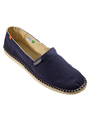 Studio : Havaianas Publisher : Havaianas Binding : Apparel Product Description Designed in Navy/Sand, the Origine III Espadrilles from Havaianas feature stitch detailing and branding around the lip. With a textile upper and rubber outsole, these canvas espadrilles provide comfort, function and fashion. Sizing conversion: Brazil 39 = UK 07, Brazil 40 = UK 08, Brazil 41 = UK 09, Brazil 42 = UK 10, Brazil 43 = UK 11. 0