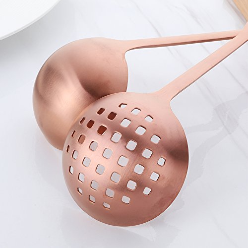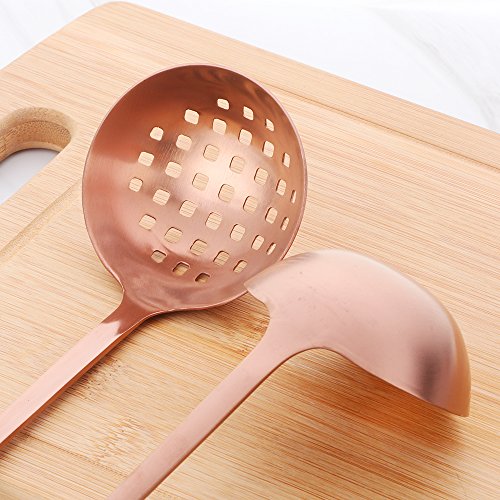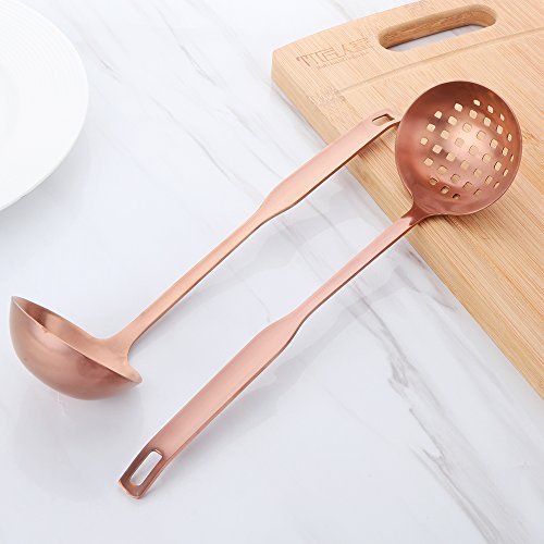 Product Detail: Item Name: Soup Slotted and Colander Spoon Set Length: 12" Width: 2.95" Weigth: 0.26lb(soup ladle) 0.24lb(colander spoon) Material Type: stainless steel Color: matte rose gold Box includes 1 pcs soup ladle and 1 pcs conlander spoon