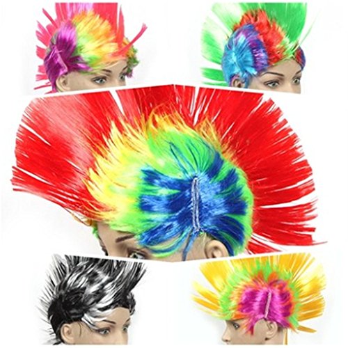 Ships from Hong Kong. These MOHAWK wigs are made of soft thick lustrous Synthetic Fiber which are durable enough for long term use. It works great for party punk costume, child costume and so on. Provides happiness and makes people laugh uncontrollably. It is a funny choice for you with this unique design wig. An ideal hair piece for most children and adults.Feature