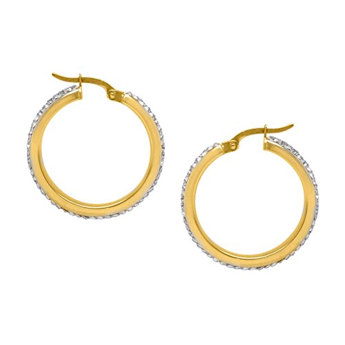 -. Title : Hoop Earrings with Swarovski Crystal in 14K Gold-Bonded Sterling Silver