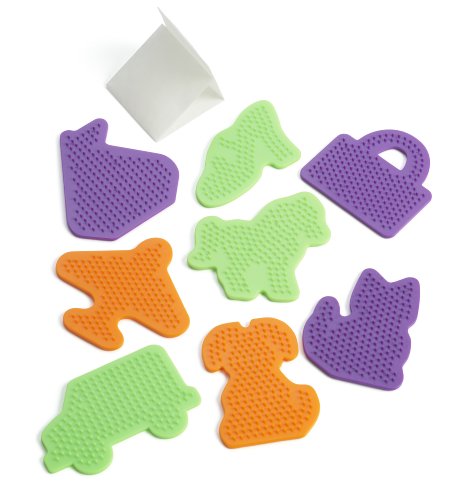 This kit contains 8 activity peg boards. Shapes are: dog plane shoe cat purse car sailboat and horse. Colors of shapes may vary. Also includes ironing paper. Pegboards and ironing paper are reusable. For use with perler beads. For ages 5+. Not for children under 3 years.Feature