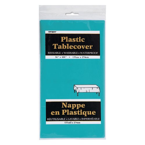 - Feature : 1 Plastic Teal Table Cover / Plastic Teal Table Cover measures 108" x 54" / Protects your party table against spills and stains / Disposable tableware makes after party clean up easy / Search for other teal party supplies and decorations from Unique