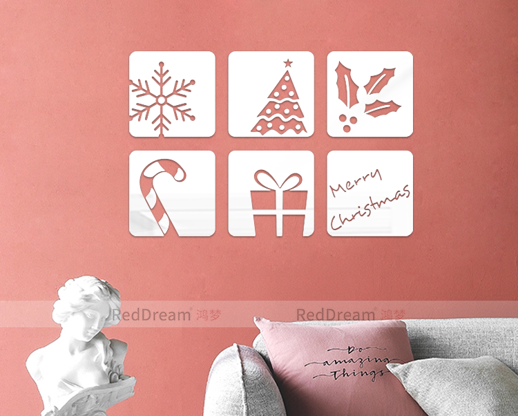 创意雪花英文圣诞元素剪影3D立体亚克力客厅节日装饰背景墙贴画
