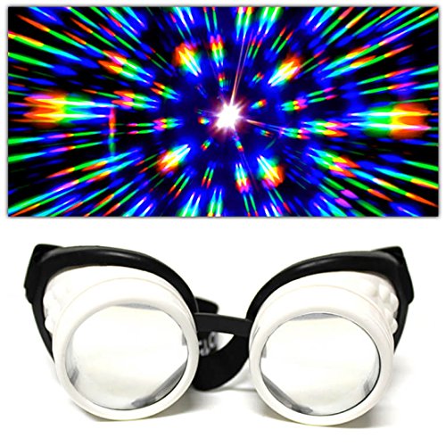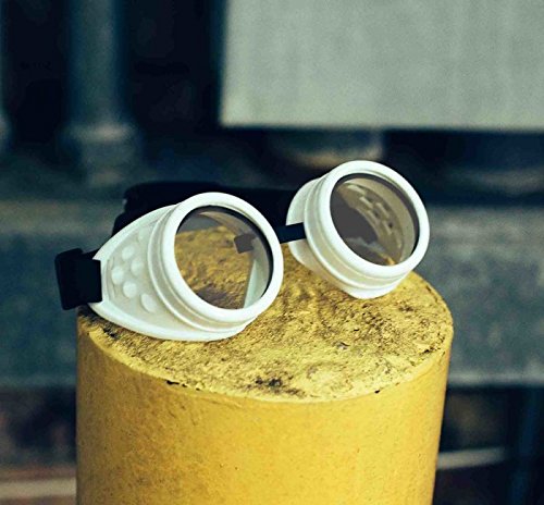 GloFX Padded Diffraction Goggles - Rave Steampunk EDM Welder Gothic Raver Costume Fashion - Chrome Copper White Black