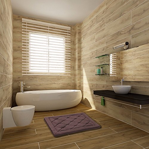 -. Feature : Skin-Friendly and Absorbent Surface - the luxuriously soft coral fleece surface keeps feet dry by quickly absorbing water after a bath, thereby keeping the bathing area or bathroom doorway clean and tidy. / Permeable Memory Foam Filling - this mat is filled with memory foam to cushion your feet and relieve pressure on the feet. Also the memory foam is permeable to allow water to flow easily from the top to bottom rather than accumulating or getting stuck within the foam. / Non-Slip Backing: the PVC knitted mesh backing with holes helps keep the mat in place to prevent slips and falls and drains water from the foam. / Not Just For Bathroom - this 24" x 17" (61 cm x 43 cm) mat works well in front of a bathroom sink or next to a bath tub, a bathroom door or a shower door. It can also be used for wherever it is needed to wipe away water from your feet and prevent slips and falls, such as kitchen, entrance and balcony.