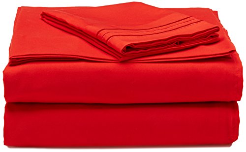 Elegant Comfort 1500 Thread Count Wrinkle Resistant Egyptian Quality Ultra Soft Luxurious 3-Piece Bed Sheet Set, Twin, Red