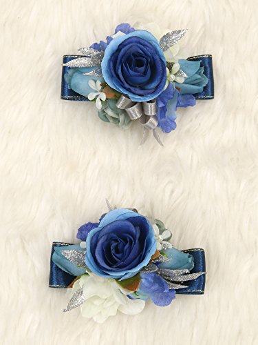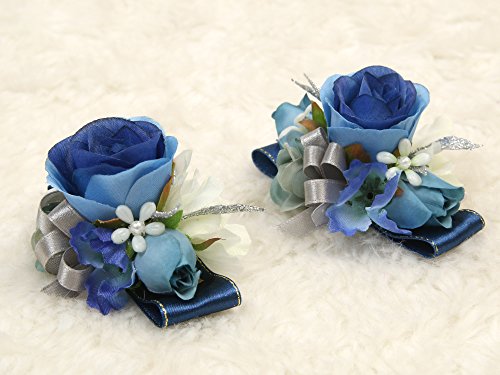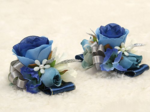 Charming Flower Boutonniere Pins for Wedding prom (2pcs) (Navy blue theme)