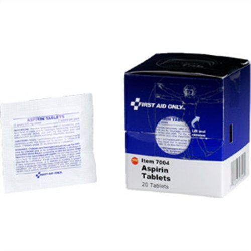 Studio : FIRST AID ONLY, INC. Publisher : FIRST AID ONLY, INC. Product Description Select aspirin for relief of minor aches and pains. Great for headaches, tooth aches and muscle aches. Also works as a fever reducer. Convenient, single-portion packets. Contains: 20 Tablets Description: 10 2 per packet Smart Compliance Refill Aspirin, per box Quantity: 20 Tablets For Use With: All SmartCompliance Kits. 0