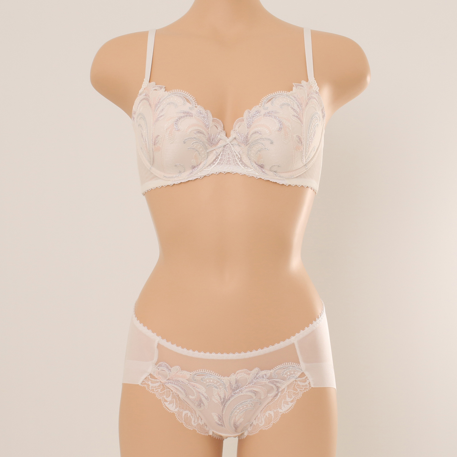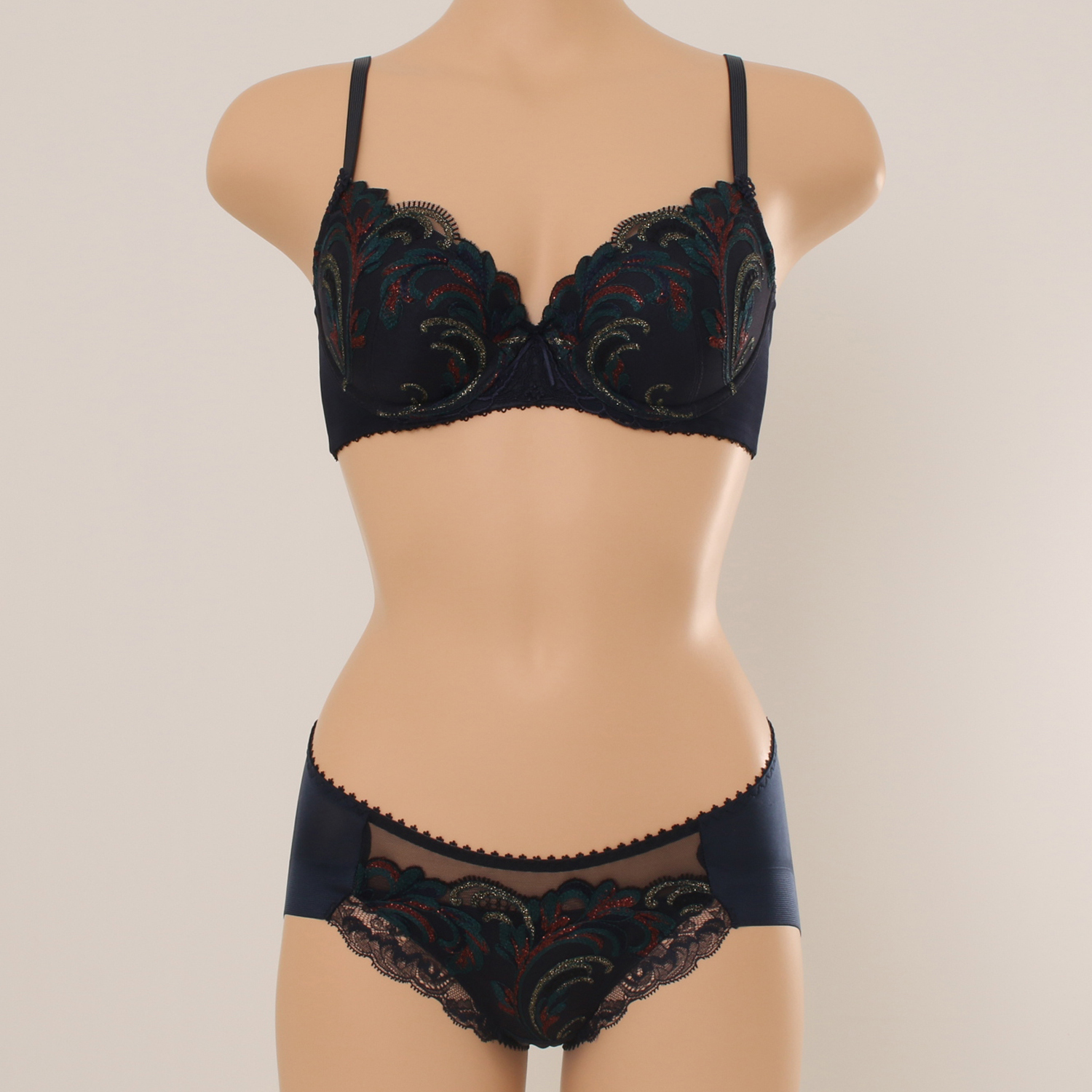 크고 화려한 무늬와 메탈사의 샤이니한 감각이 돋보이는 튤자수 패드 브라입니다.